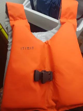 Chaleco salvavidas de la marca ITIWIT, diseñado para niños. - Color naranja brillante. - Cierre de hebilla. - Talla 25/40 kg.