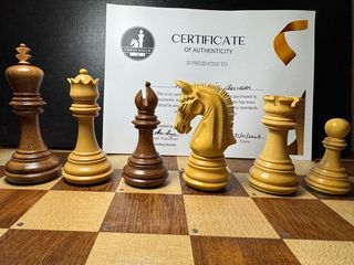 Somos tienda online. Juego de Ajedrez Jaques de 1849 – Elegancia Clásica con Acabado Envejecido Esta magnífica reproducción del icónico diseño de John Jaques, registrado por Nathaniel Cooke en 1849, captura la esencia del ajedrez clásico con un acabado que evoca el paso del tiempo. ♟️ Auténtico estilo vintage: Gracias a la combinación de boj envejecido para las piezas claras y boj teñido en caoba para las oscuras, el juego adquiere un carácter antiguo y distinguido. ♟️ Diseño histórico: Réplica exacta del modelo que marcó un antes y un después en el mundo del ajedrez. ♟️ Artesanía impecable: Cada pieza ha sido meticulosamente tallada para ofrecer detalles refinados y un equilibrio perfecto. Un juego de ajedrez pensado para coleccionistas y apasionados que valoran la historia, la calidad y el estilo atemporal. ♔✨ Posibilidad de añadir caja de madera de caoba n8 por 20€ mas. con un valor de 45€