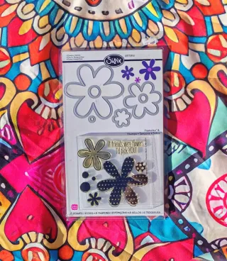 Set de troqueles y sellos de la marca Sizzix con diseño de flores. - Incluye 6 troqueles (dies) para cortar. - Incluye 8 sellos (stamps) para estampar. - Diseño de flores y frases. - Modelo 657916.
