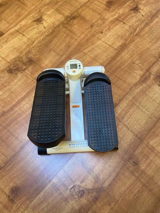 Mini stepper Domyos MS100 en color blanco y negro. Ideal para ejercitar las piernas y glúteos. - Pedales con superficie antideslizante. - Pantalla digital. - Estructura metálica.