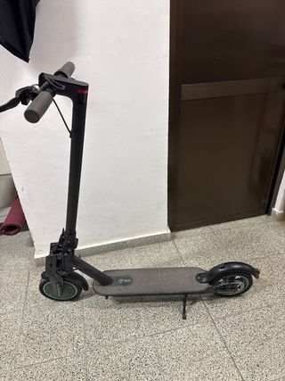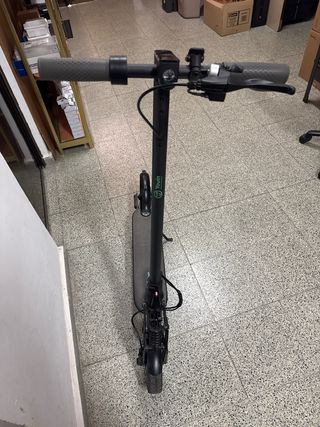 Patinete eléctrico sin estrenar, ideal para desplazamientos urbanos. - Color negro. - Diseño moderno y funcional. - Ruedas con detalles verdes.