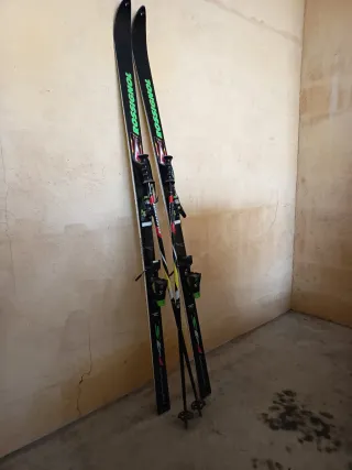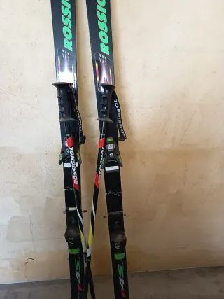 Se venden esquís Rossignol de 1.90 metros de largo. Son de color negro con detalles en rojo. - Marca: Rossignol - Color: Negro con franjas rojas - Longitud: 1.90 m
