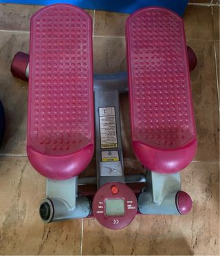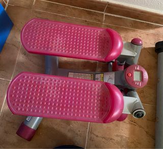 Equipo de ejercicio para tonificar piernas y glúteos. - Pedales antideslizantes de color rosa. - Pantalla digital para seguimiento de actividad. - Estructura metálica resistente.
