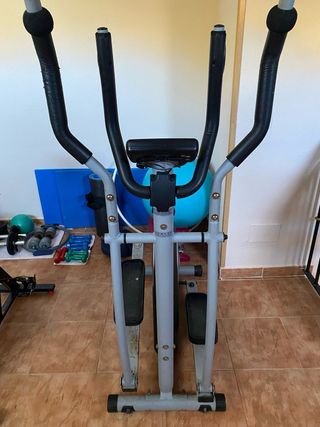 Elíptica de color gris, ideal para entrenar en casa. Cuenta con pedales antideslizantes y manillar ergonómico. - Estructura metálica. - Pedales amplios. - Manillar con agarres acolchados.