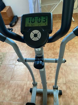 Bicicleta estática en excelente estado, con muy poco uso. - Diseño moderno y funcional. - Asiento acolchado para mayor comodidad. - Pantalla digital para seguimiento de ejercicio.