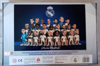 Puzzle del Real Madrid, ideal para coleccionistas y aficionados al fútbol. Representa a varios jugadores del equipo con un diseño caricaturesco. - 1.000 piezas. - Dimensiones: 50x75cm. - Producto oficial.