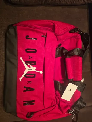 Práctica bolsa de deporte de la marca Jordan en color rojo. - Diseño deportivo. - Logo de Jordan visible.