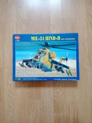 Maqueta de plástico a escala 1:72 del helicóptero de ataque soviético Mil Mi-24 Hind-D. - Longitud: 264mm. - Anchura: 113mm. - Diámetro del rotor: 224mm. - Incluye 104 piezas, manual de montaje y pintura. - Calcas originales 3 versiones: U. Soviética, R. Checa y Lutfwaffe. - Calcas extras de HDL de gran calidad: U. Soviética, Polonia, DDR, Lutfwaffe e Irak.