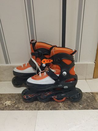 Patines en línea con diseño moderno y ajustable. Tiene algún roce típico de uso pero como se aprecia en las fotos la bota está nueva, tiene muy poco uso - Talla ajustable de 37 a 41. - Cierre de velcro y hebilla. - Ruedas ABEC 7.