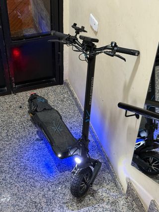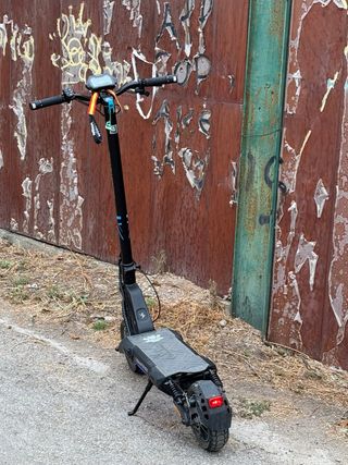 Motor eléctrico 2100W: gran fuerza y aceleración. Frenos de disco delantero y trasero para máxima seguridad. Doble suspensión: delantera de horquilla y trasera con amortiguador. Ruedas grandes tipo 10” que dan estabilidad y agarre. Chasis reforzado y deck ancho, muy cómodo. Manillar plegable para facilitar transporte y almacenamiento. Faro delantero instalado, perfecto para circular con buena visibilidad. Pata de cabra incluida. Estado Funciona correctamente.