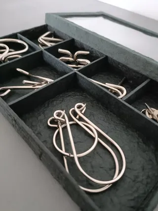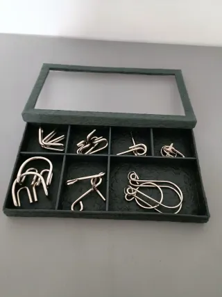 Conjunto de 7 rompecabezas de metal. - Diseños variados para desafiar tu ingenio. - Fabricados en metal resistente.