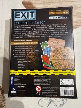 Juego de mesa de escape room La tumba del faraón de la serie EXIT. - Nivel de dificultad: Experto. - Diseñado por Inka y Markus Brand. - Editorial Devir.