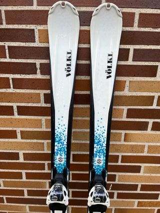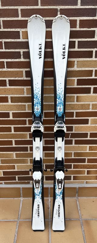 Esquís Völkl Essenza Aurena en medida de 153 cm. Longitud: 153 cm. Cotas 120 / 75 / 105 Excelente estabilidad. Radio de giro 12,8 m Giros cortos y ágiles. Construcción Woodcore Light, núcleo de madera aligerado. Tecnología Tip Rocker, son extremadamente fáciles de girar. Perfil All Condition, se adaptan bien a nieve dura o nieve primavera. Estado: Muy cuidados, con suelas y cantos en buen estado. Suelas sin rayas profundas y cantos con mucho grosor (poco afilado previo). Incluyen fijaciones originales Marker de alta seguridad y fácilmente ajustables a cualquier tamaño de bota. Entrega: Villanueva del Pardillo o Ciudad Universitaria.