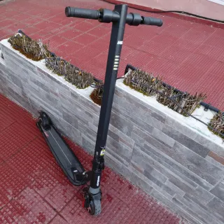 Patinete eléctrico de color negro, ideal para desplazamientos urbanos. - Especificaciones del iwatRoad CI5996 - Peso Real: Aproximadamente 9,6 kg - Potencia: Motor de 250W, pensado para terrenos llanos y usuarios de peso medio. Construcción: Chasis de aluminio y fibra de carbono para reducir el peso al máximo. - Portabilidad: Es un modelo plegable diseñado específicamente para ser transportado con una mano - Manillar ajustable en altura. - Ruedas de goma. - Luces LED delanteras y traseras. No incluye cargador.