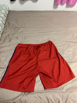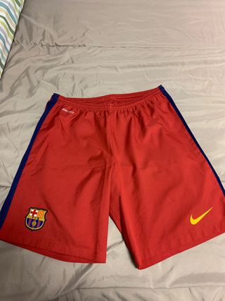 Pantalón corto de fútbol del FC Barcelona, temporada 2015/2016. - Color rojo con detalles en azul. - Logo del FC Barcelona bordado. - Logo de Nike y Dri-FIT impresos. - Talla L