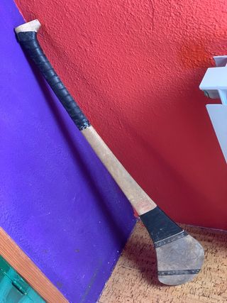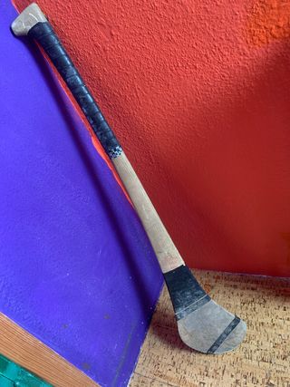 Hurley de hurling tradicional de madera, ideal para practicar este deporte. - Material: Madera. - Diseño clásico con agarre y cabeza ancha.