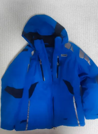 Chaqueta de esquí para niño con un diseño moderno y funcional. - Color azul vibrante con detalles en negro. - Cremalleras frontales y en los bolsillos. - Capucha integrada para mayor protección. - Detalles reflectantes en mangas y parte frontal. - Bolsillos interiores