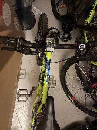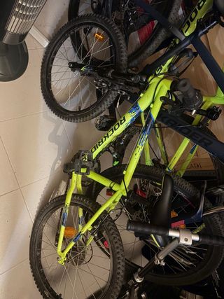 Bicicleta infantil de la marca Rockrider, ideal para los más pequeños. - Cuadro de color verde lima. - Ruedas de 20 pulgadas. - Diseño deportivo con detalles azules.