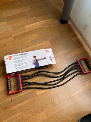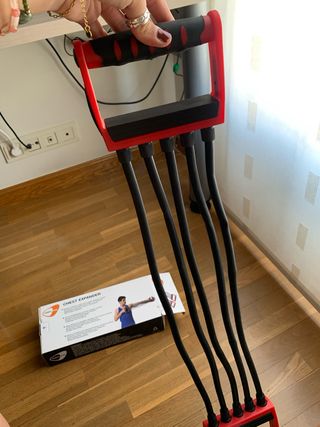 Expansor de pecho, hombros y más. Ideal para entrenar en casa. - Mangos ergonómicos para un agarre cómodo. - Bandas elásticas de alta resistencia. - Diseño portátil y ligero.