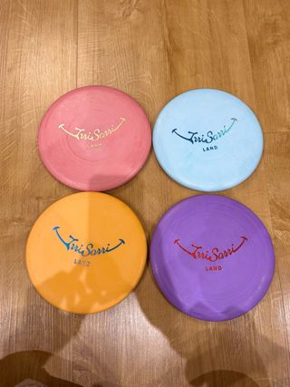 Lote de cuatro discos de disc golf profesional, de la marca Irisarri Land. - IMPECABLES. Usados 1 vez, el día que se compraron - Las características están pintadas dentro del disco (venía así) #fresbee, #discgolf