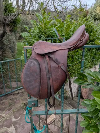 Silla de montar de cuero Zaldi Jupiter. Montura inglesa - Color marrón. - Diseño clásico.