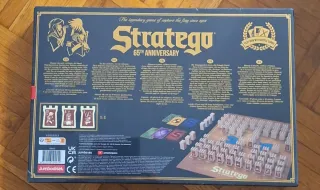 Edición especial del clásico juego de mesa Stratego, celebrando su 65 aniversario. - Deluxe Box con diseño especial. - Incluye Battle Cards adicionales. - Edición limitada. - Textos en varios idiomas, incluyendo español. No bajo el precio, ya está rebajado.