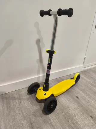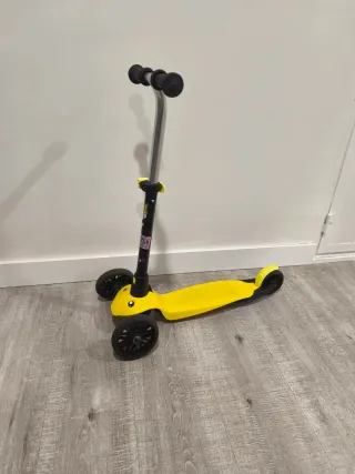 Patinete infantil de tres ruedas en color amarillo brillante. Diseñado para los más pequeños, ofrece estabilidad y diversión. - Tres ruedas para mayor equilibrio. - Manillar con empuñaduras cómodas. - Plataforma antideslizante.