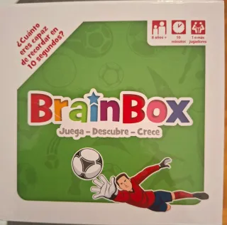 Juego de mesa BrainBox con temática de fútbol. Ideal para poner a prueba la memoria y la capacidad de observación. - Juego de cartas. - Para 1 o más jugadores. - Duración aproximada de 10 minutos. - Edad recomendada: 8 años +.