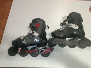 Se venden patines en línea Oxelo, ideales para iniciarse en el patinaje. - Talla ajustable 34-36. - Cierre de velcro y hebilla. - Ruedas de poliuretano.