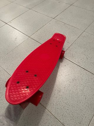 Tabla de skate de color rojo. - Ruedas rojas. - Diseño clásico de penny board.