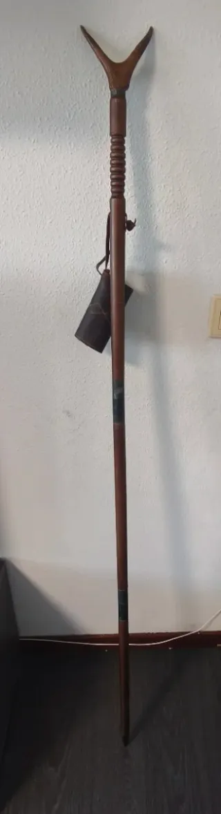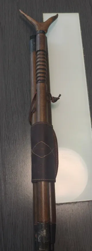 Bastón de caza vintage madera y cuero