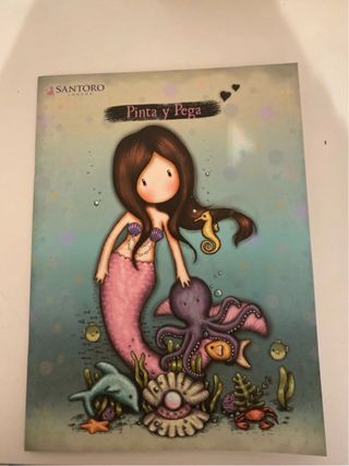 Cuaderno de actividades Pinta y Pega de Gorjuss con temática de sirena. - Diseño encantador con una sirena y criaturas marinas. - Ideal para colorear y pegar. - Marca: Santoro London. - Las pegatinas ya están pegadas