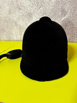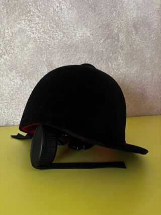 Vendo gorro/casco de equitación marca Zaldi (Salamanca). Talla 56 (6 7/8) según etiqueta. Exterior de terciopelo negro con visera. Interior con forro rojo y tiras para sujetar la barbilla. En buen estado, sin golpes visibles. Ideal para equitación clásica o uso recreativo.