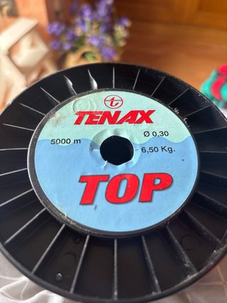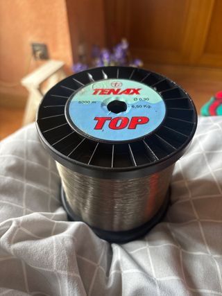 bobina grande de hilo de pesca Tenax TOP, ideal para pesca deportiva. • Longitud: 5000 metros • Grosor: 0,30 mm • Resistencia: 6,5 kg • Color transparente El hilo está en muy buen estado, prácticamente sin uso (ver fotos). Perfecto para quien pesque con frecuencia o quiera una bobina de gran capacidad.