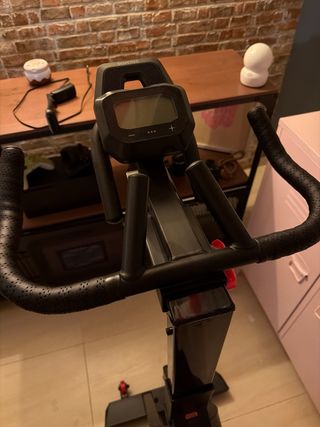 Bicicleta de spinning Domyos Biking 500 en color negro. - Manillar ajustable. - Sillín acolchado. - Pedales con agarre. - Ruedas para transporte. -Se da sillin de gel y original. Entrega en yuncos, no negociable. Esta nueva