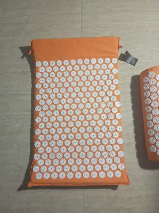 Set de esterilla y almohada de acupresión en color naranja. - Esterilla con múltiples púas para masaje. - Almohada a juego para mayor comodidad. - Diseño ergonómico.
