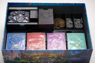 Organizador para el juego de mesa La Corona del Viejo Rey. Mantiene todos los componentes ordenados. IMPORTANTE: Verifícame que tu caja mide 239mm o menos, en función de eso se imprimen unas bandejas u otras. - Diseñado para encajar perfectamente en la caja del juego. - Compartimentos para fichas, cartas y otros elementos. ADMITE cartas enfundadas. NO incluye el juego. Se puede imprimir en uno o varios colores.