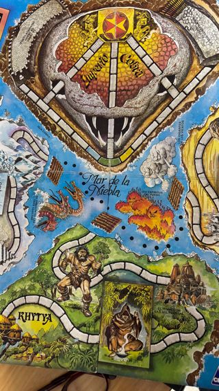 Juego de mesa En busca del Imperio Cobra de CEFA. Un juego de aventuras. - Portada con diseño de cobra y temática fantástica. - Incluye texto Un juego de aventuras entre lo fantástico y lo mágico. Bastante desgastado , falta una pieza original de los peones Sw adjuntan fotos