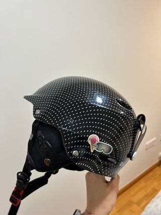 Casco de esquí Roxy para niña con un divertido diseño de lunares blancos sobre fondo negro. Es un accesorio ideal para disfrutar de la nieve con seguridad. - Diseño de lunares. - Marca Roxy.