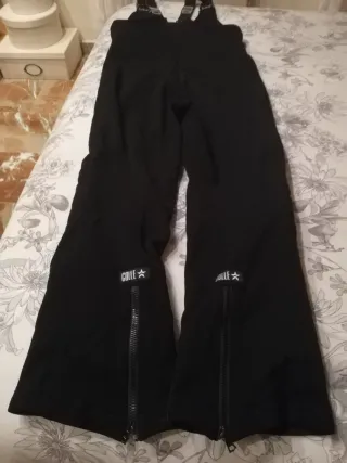 Pantalón de esquí negro para mujer, talla M. Usado solo dos veces, se encuentra en buen estado. - Cremalleras en los bajos. - Tirantes ajustables. - Detalle de logo en la pierna.