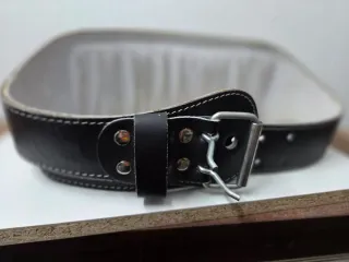 Cinturón de cuero para levantamiento de pesas de la marca DOMYOS. Diseñado para ofrecer soporte y estabilidad durante el entrenamiento. - Material: Cuero. - Color: Negro. - Costuras reforzadas.