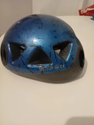 Casco de escalada Meteor en color azul. Diseñado para ofrecer protección y comodidad. - Diseño ligero y ventilado. - Cierre ajustable. - Homologado CE.