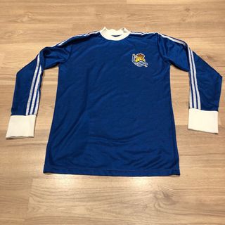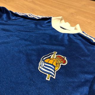 Camiseta talla S de la Real Sociedad similar a la segunda equipación de los años 80. - Color azul. - Detalles blancos en cuello y mangas. - Escudo del club bordado.