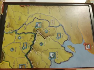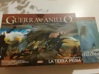 Juego de mesa Guerra del Anillo, Segunda Edición, junto con la expansión Señores de la Tierra Media. La caja está ligeramente rozada por las esquinas. Las minis de ejércitos de gondor elfos y un par de orcos pintados. La Expansión como nueva sin destroquelar ni haberse usado. Todo el material incluido y en perfecto estado para jugar. - Guerra del Anillo: Basado en la trilogía de J.R.R. Tolkien. - Ilustrado por John Howe. - Incluye la expansión Señores de la Tierra Media.
