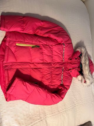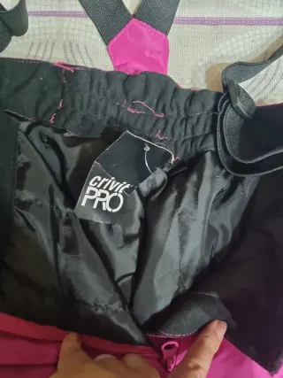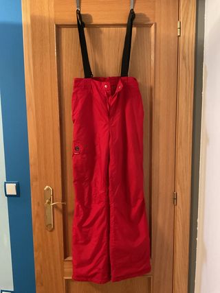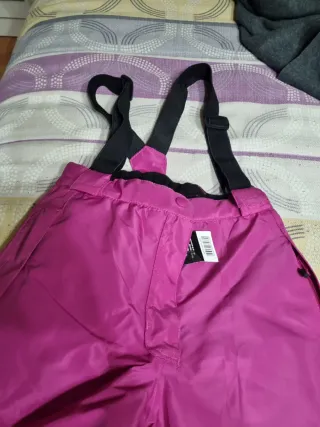 Pantalones de nieve de color fucsia con tirantes ajustables. Talla 8 10 años. Nunca se han usado. Tienen una marchita apreciable en las fotos, en la parte trasera de una se las perneras. - Tirantes negros. - Cierre de botón y cremallera. - Bolsillo lateral con etiqueta.