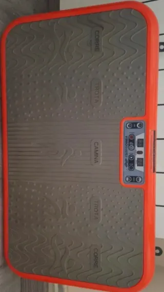 Plataforma vibratoria Vibroshaper en color naranja y gris. Incluye mando a distancia. - Diseño moderno y compacto. - Superficie texturizada para mayor agarre. - Panel de control integrado.