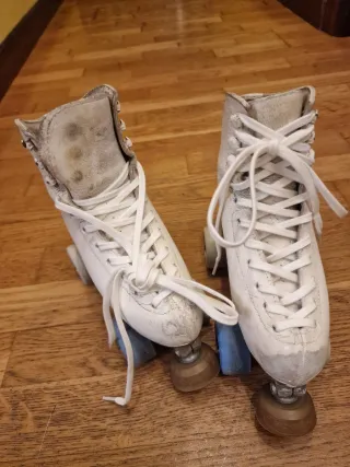 Patines Clásicos Blancos y Dorados. Talla 38