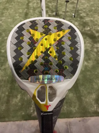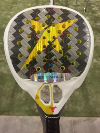 .Pala Drop Shot Lucas Campagnolo Explorer Pro Attack 1.0 2025 Be unique Como nueva, una clase de uso. - Superficie con patrón geométrico. - Incluye correa de seguridad en el mango.