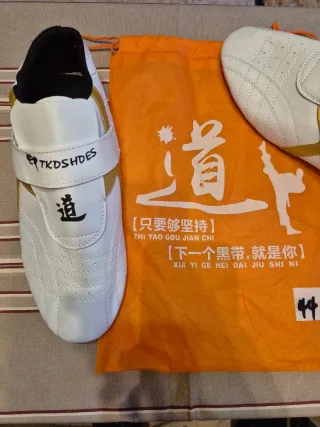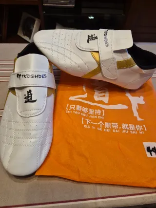 Zapatos Taekwondo TKDSHDES Blancos Dorados numer44