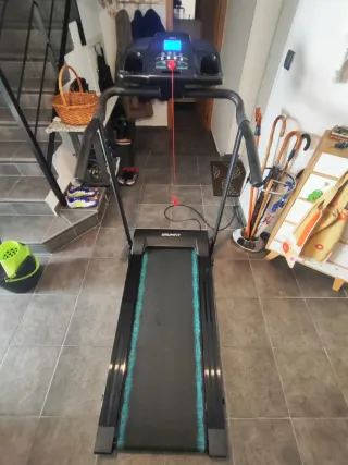 Cinta de correr marca Drumfit en buen estado. la vendo por qué tengo 2, está casi a estrenar. - Diseño moderno con detalles en azul. - Pantalla digital. - Cable de seguridad rojo.